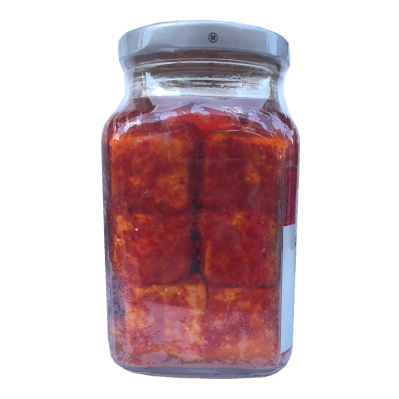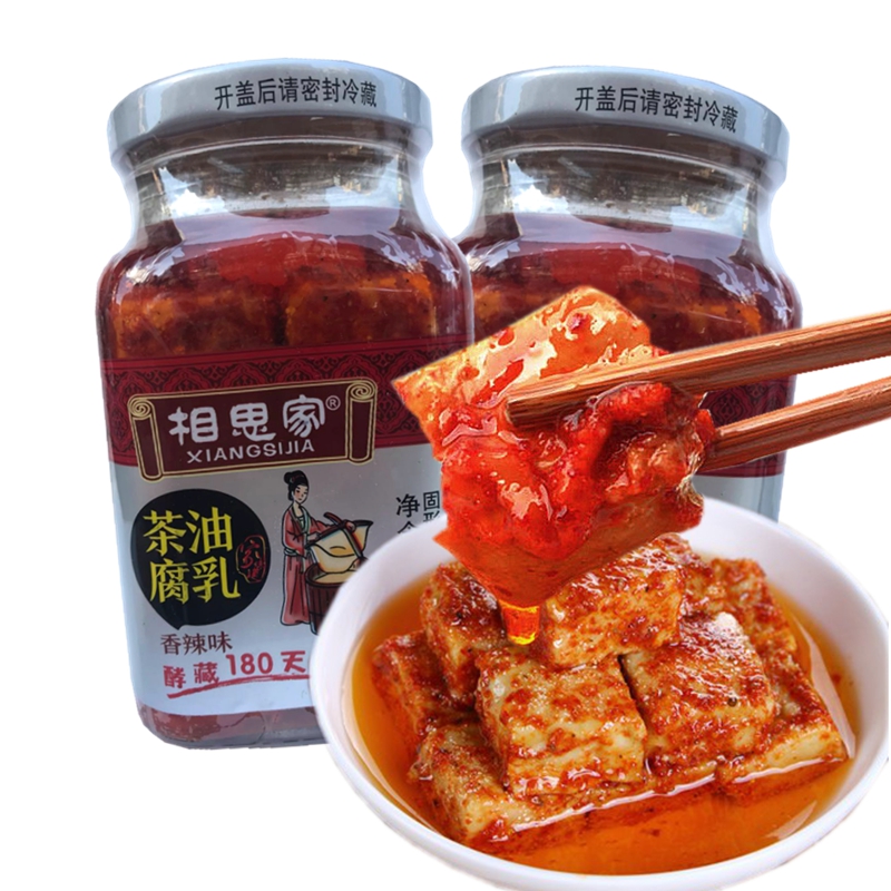 Tofu milky cheese with spicy notes of tea oil curd 2 bottles of red oil tea oil mouldy milky and spicy with appetizing appetizers