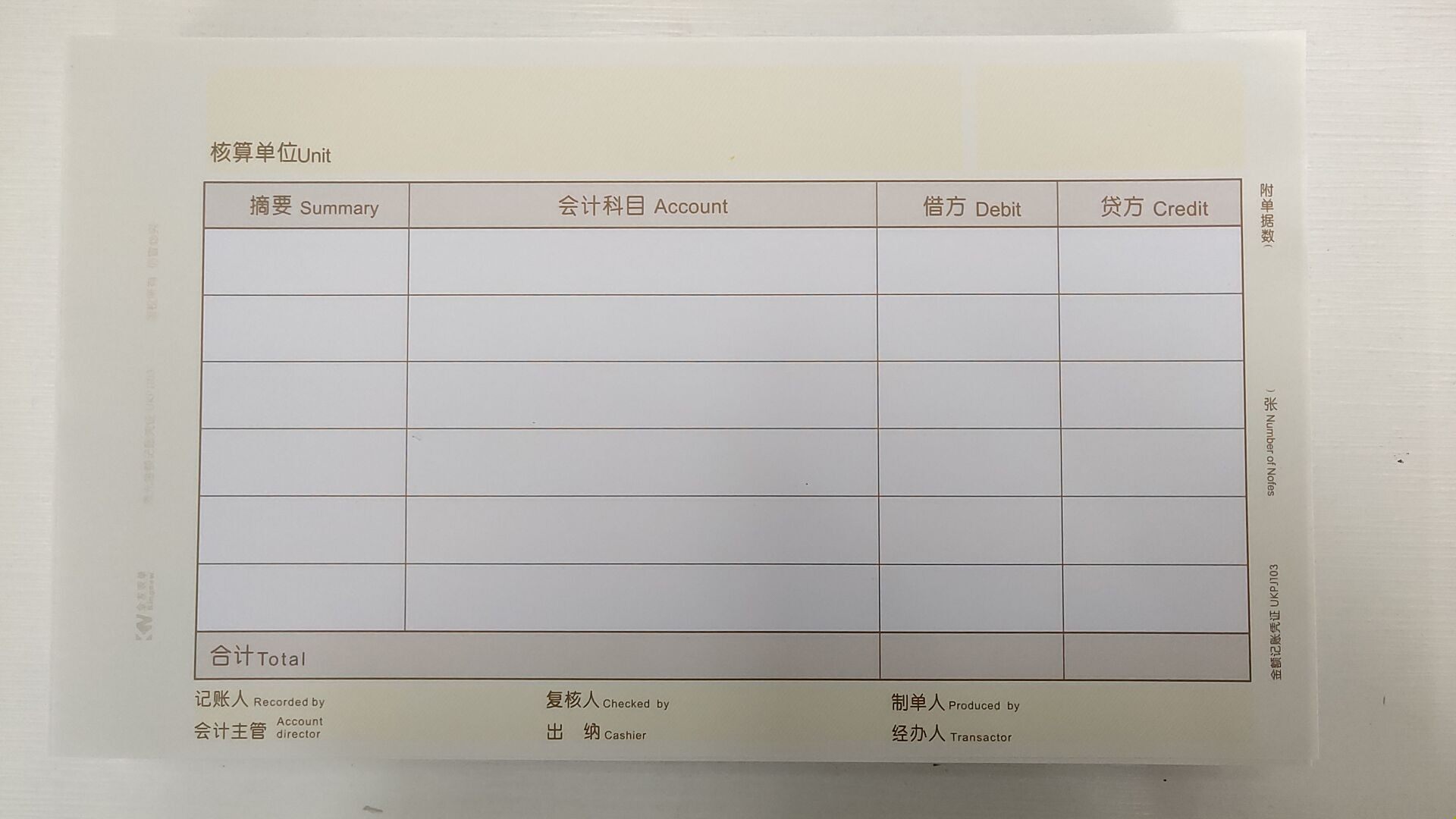 Kingdee form UKPJ103 additional KPJ103 laser amount accounting vouchers 241*139.7mm invoice version
