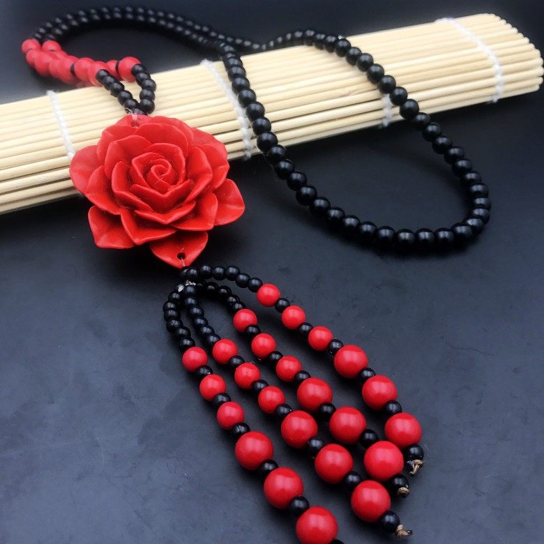 New vind retro 100 hitch red gold Sand Sweater Necklace this year long version of women Rose Lace Pendant National Wind Accessories