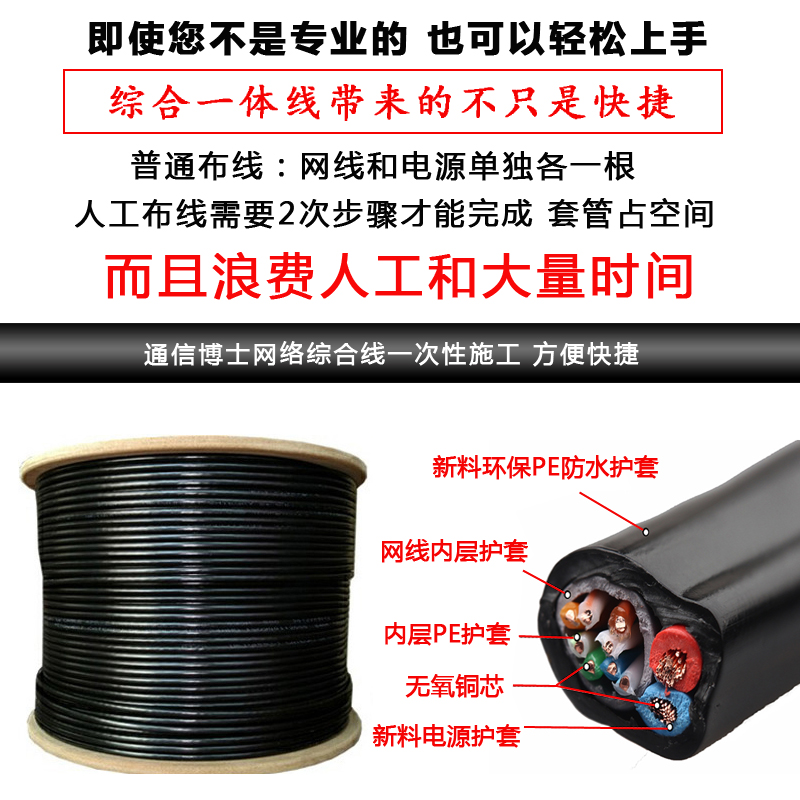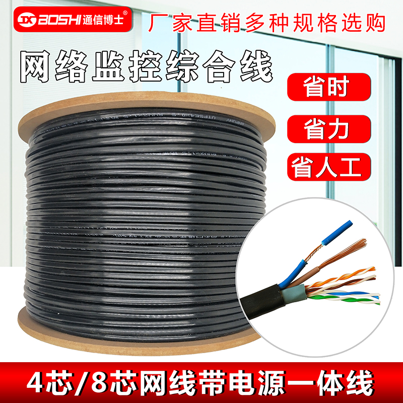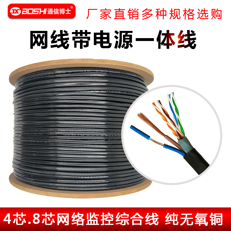 Pure copper Oxygen-free copper 4-core 8-core network cable with power supply integration Outdoor network integrated line monitoring twisted pair