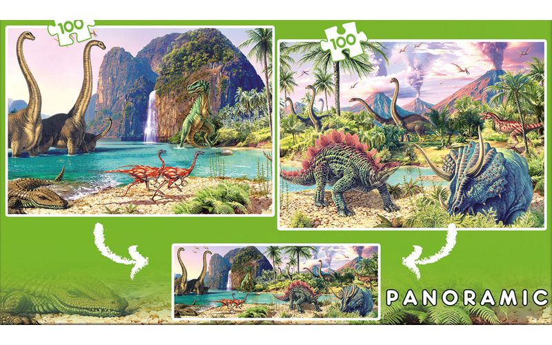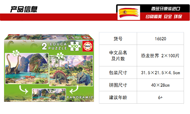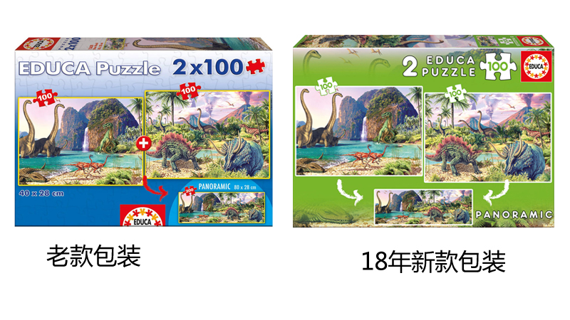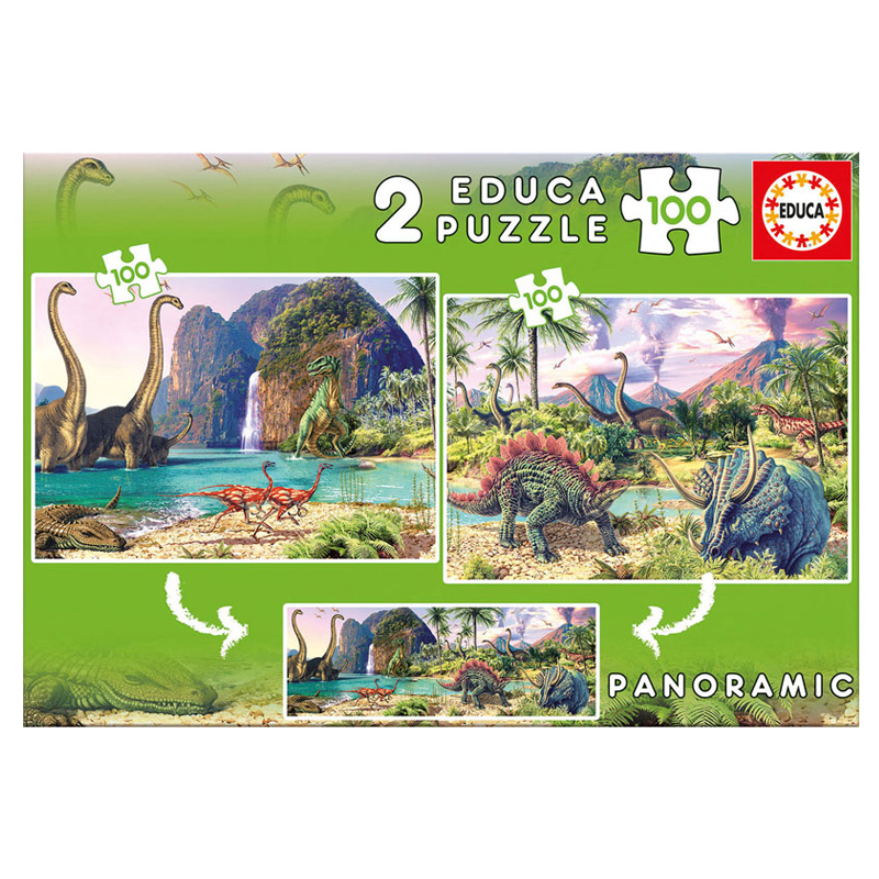 EDUCA Dinosaur World 2 Pieces of 100 Pieces Cartoon Cartoon Spanish Imported Children's Puzzle 15620