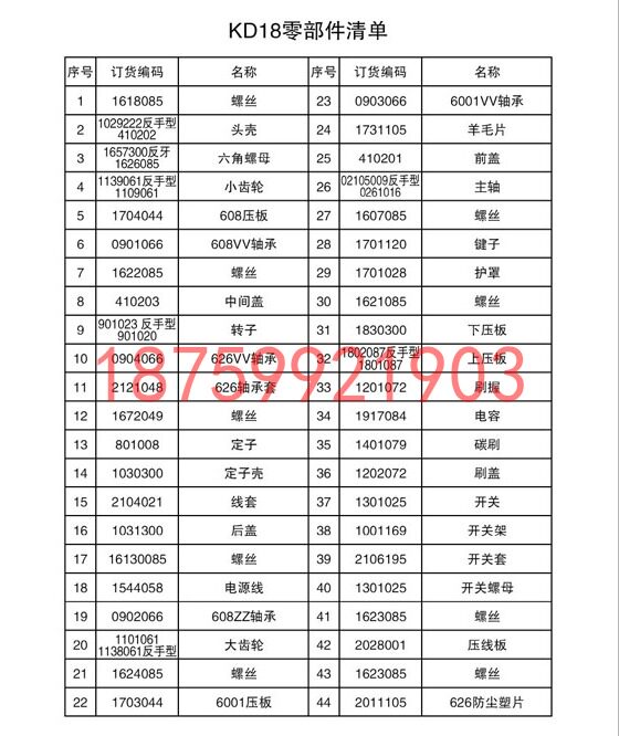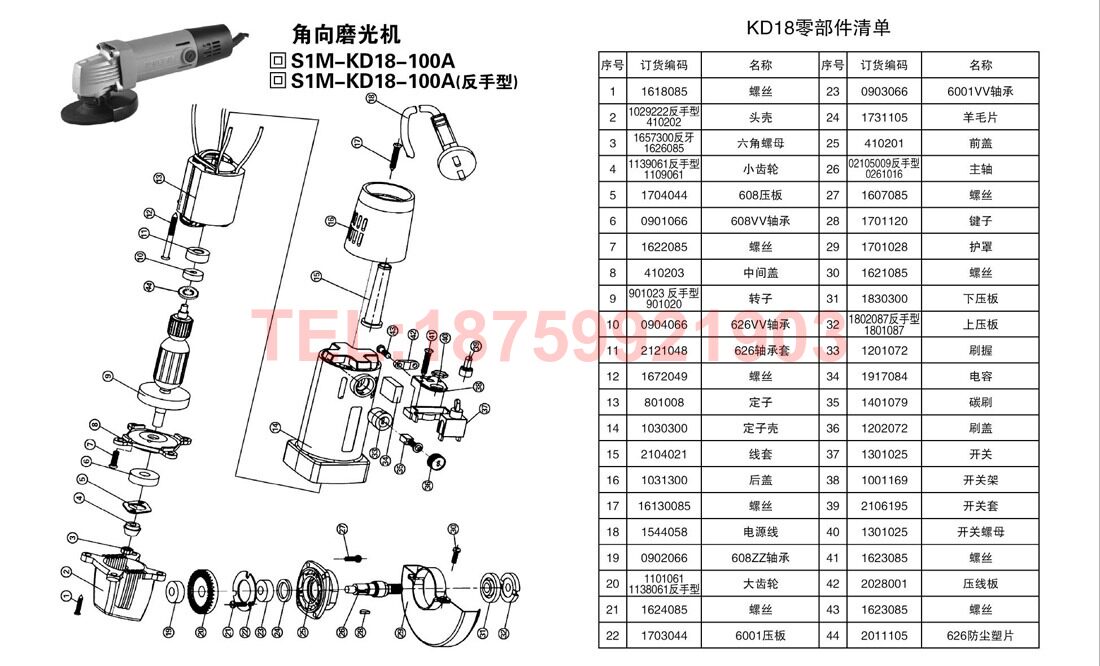 Robust accessories KD18-100A corner mill rotor stator shell rear cover gear main bearing pressure plate switch carbon brush