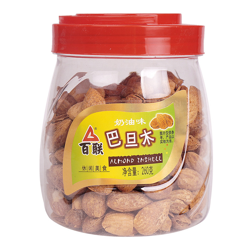 Bailian peeled cream flavor shelled badan wood kernel canned 260g large almond almond nut packaging zero food
