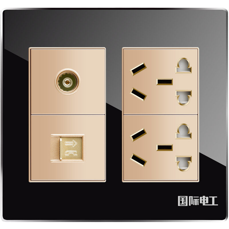 International Electrician 120 type switch socket panel is secretly installed in a large box of two or three plugs black TV telephone ten-hole socket