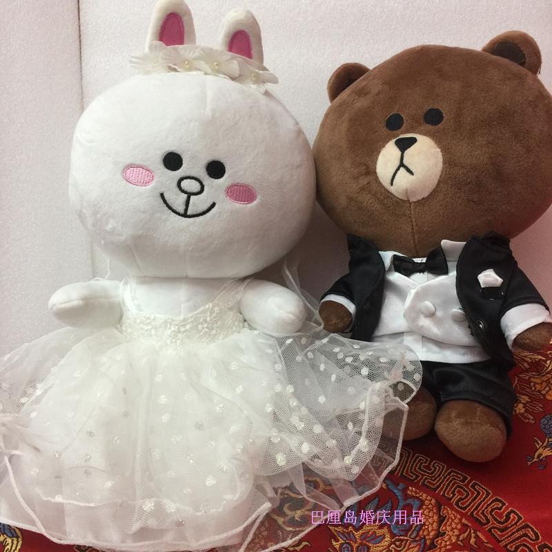 Brown bear Kenny rabbit new wedding dress wedding doll main wedding car head press bed doll doll couple wedding gift