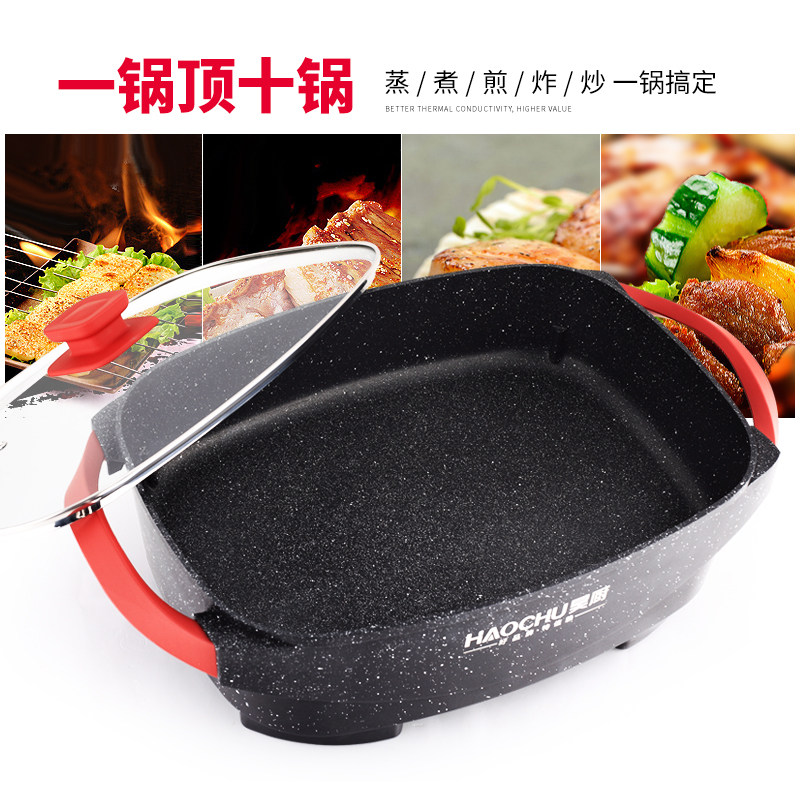 Hao Kitchen Electric Hot Pot Home Multifunction Cuisine Pan Electric Frying Pan Fried Vegetable Electric Pan Barbecue Integrated Pan Quick Cooking Pan 3242