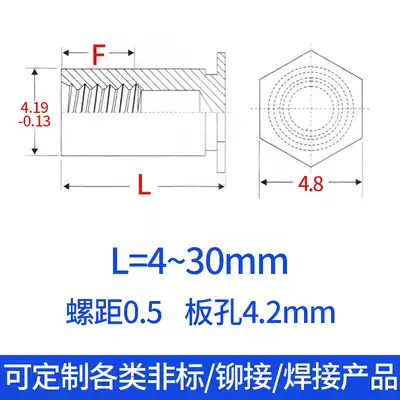 Blind hole riveting stud press riveting stud stud riveting column M3x4 ~ M3x30 outer diameter 4 2 negative