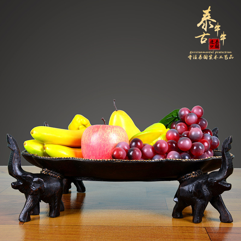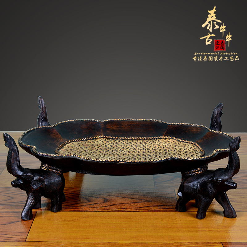 Thailand imported wood fruit plate Southeast Asian retro style club household solid wood carved elephant dried fruit plate