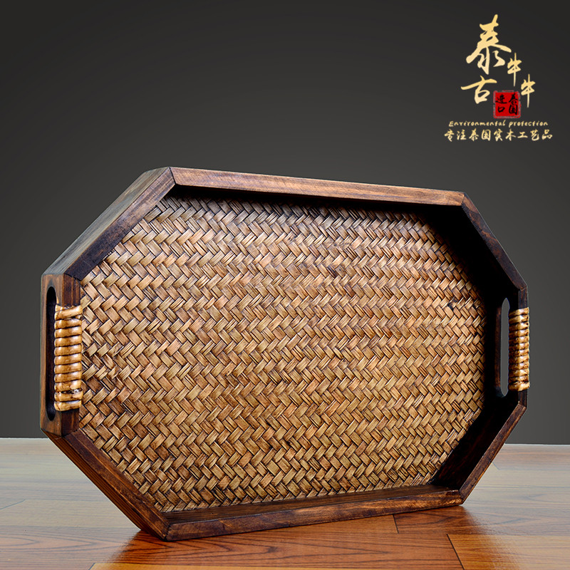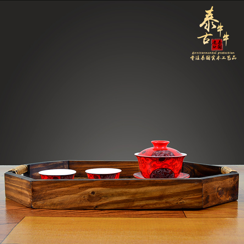 Thailand retro 3-piece tray tea table storage tea tray Southeast Asian club hotel wooden tableware storage tray