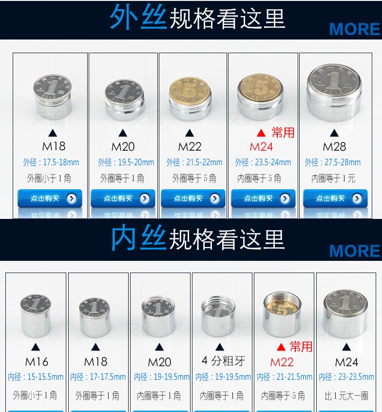 Faucet to millet water purifier accessories internal and external fine teeth 16 18 20 22 24 turns 4 points thick tooth copper joint
