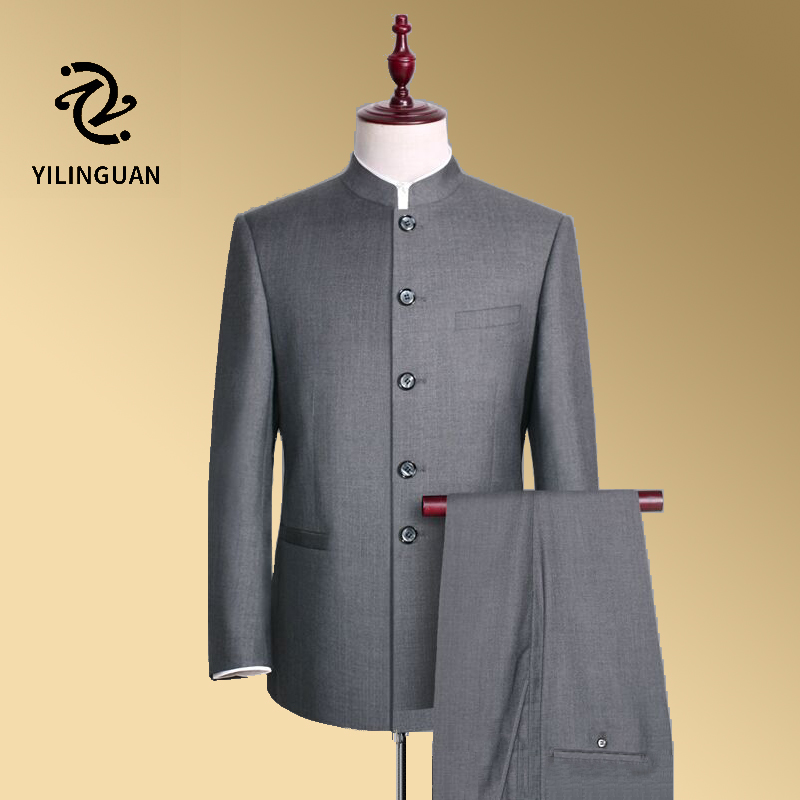 Tunic suit Men's youth Chinese stand-up collar suit Slim Chinese groom's dress Chinese style Tang suit Autumn