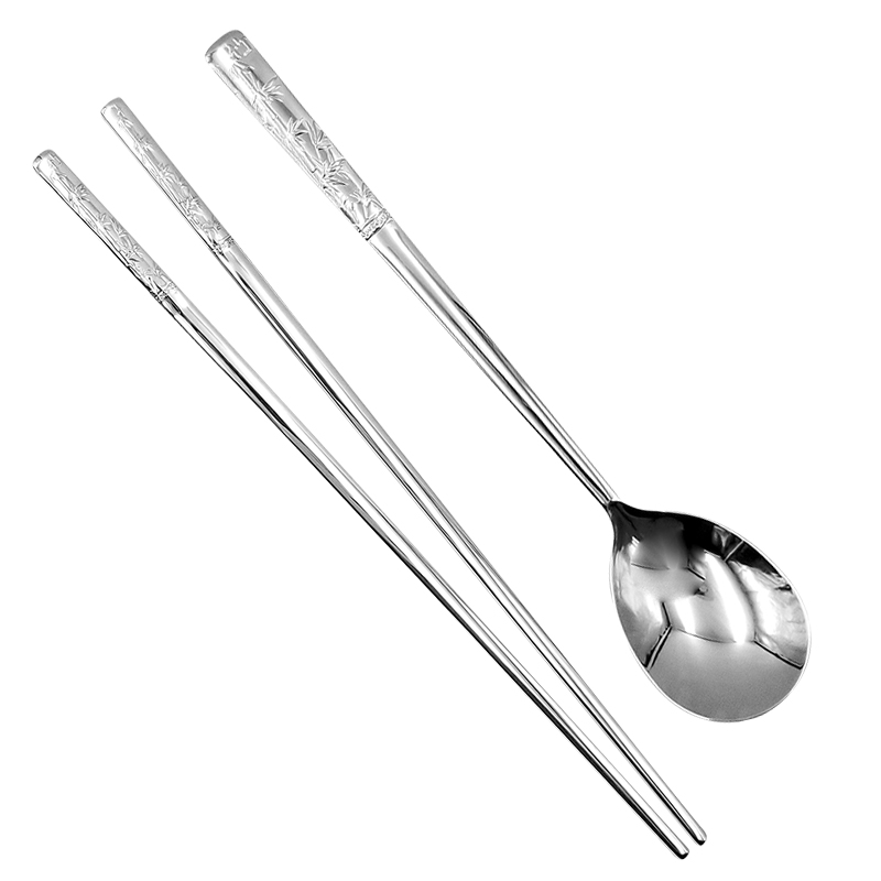 Silver tableware 999 sterling silver chopsticks silver spoon tableware set Korean flat household edible snowflake silver chopsticks silver spoon
