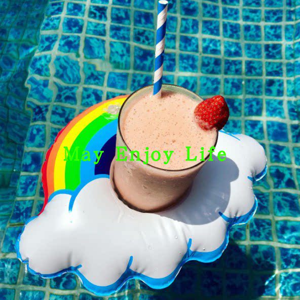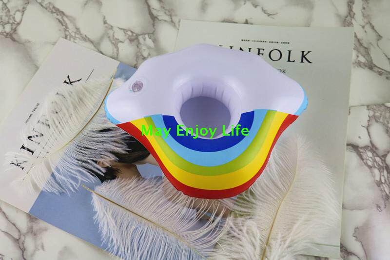 Play Water Toy Inflatable Rainbow Clouds Cup Cushion Drinks cup Milk Tea Cup Seat Sea Floating phone Waterproof Shelf