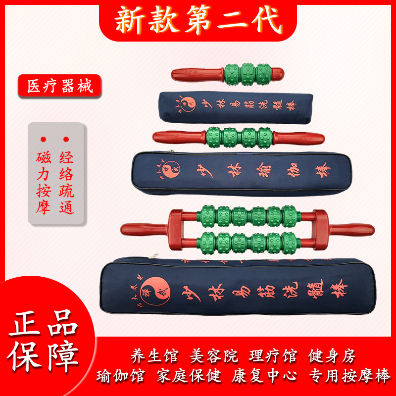 Shaolin Yijing Washing Marrow Rod Magnetic Therapy Rod Meridian Double Roller Massage Magnetic Rod Neck, Shoulder, and Lumbar Rehabilitation Yoga Rod