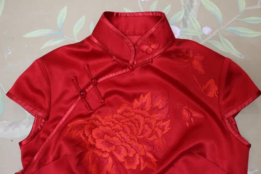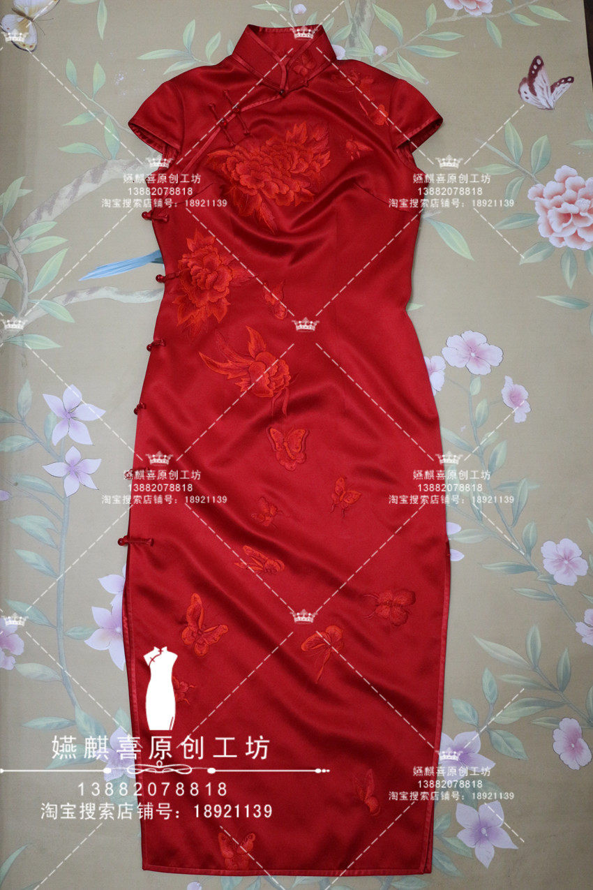 Heavy silk hand embroidered cheongsam Dress Everyday dress Slim dress Wedding cheongsam
