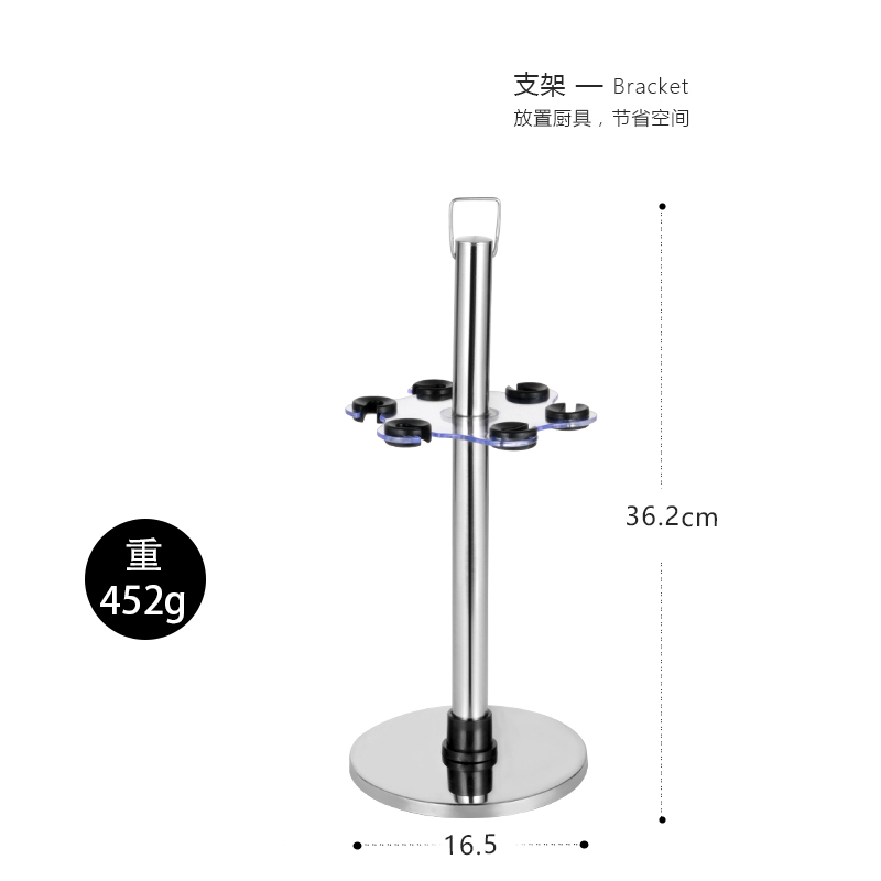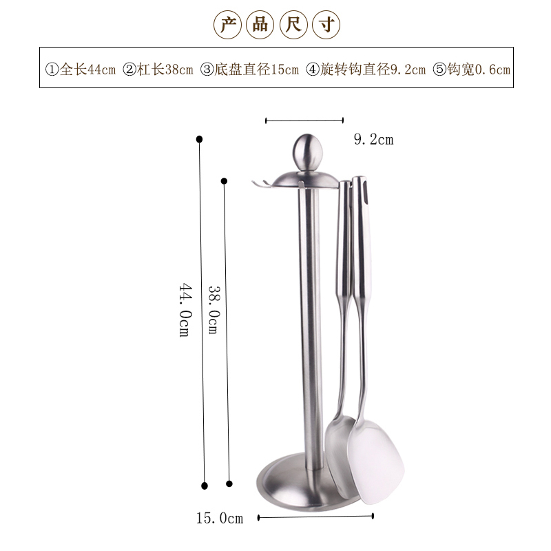 Kitchen shelf 6 hooks tableware shelf Storage shelf Shovel spoon rack Spatula rack Stainless steel 360 degree rotating pylons