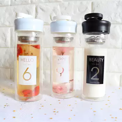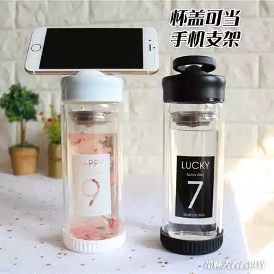 Student double-layer glass men and women creative insulation couple water cup Korean version portable accompanying cup with lid tea cup