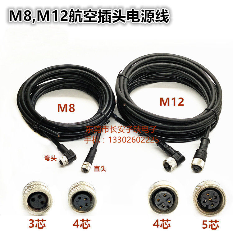 M12 M8 3-core 4-core straight elbow proximity switch aviation plug power cable sensor cable