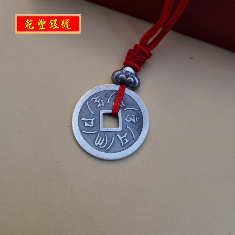 Sterling silver Xiangyun ancient money pendant foot silver 999 retro silver coin auspicious tag six-character proverbs heart sutra more than year after year