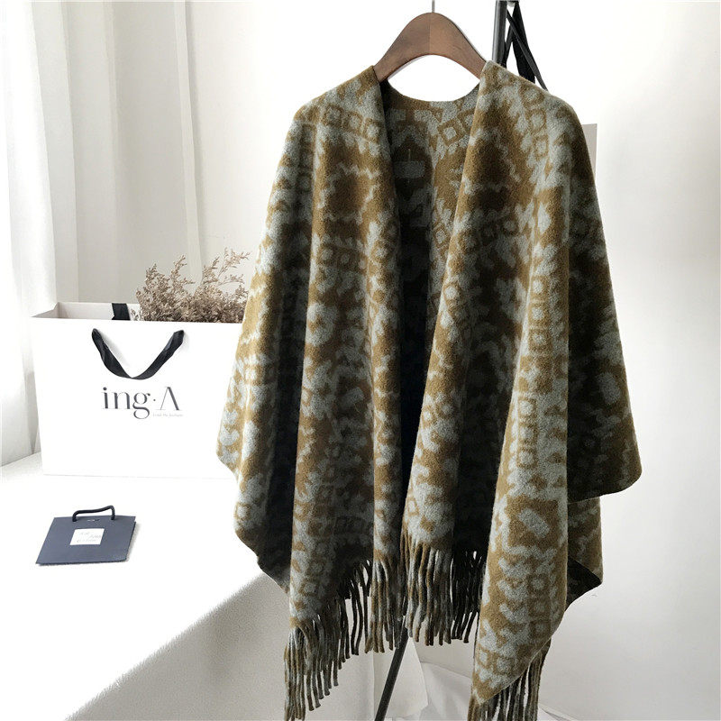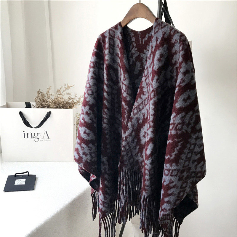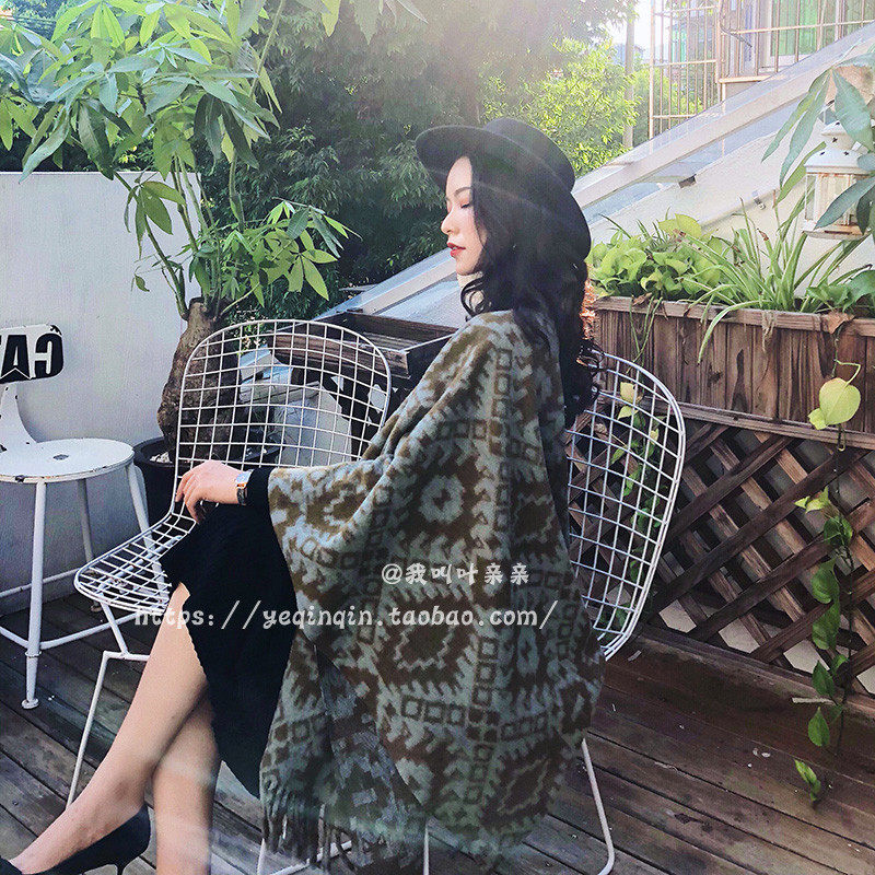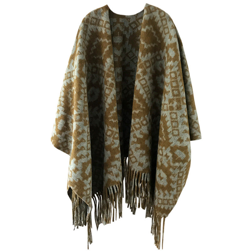 Wool cape shawl Women's spring literature and art wild ethnic style long fringed thick wool cloak coat Spring and autumn