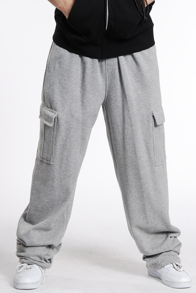 Plus velvet padded men's pants winter multi-pocket straight pants loose large size casual sweatpants pants fat pants tide tide