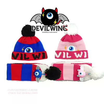 DevilWing little devil Winter Children's hat padded male girl plus velvet warm ear ring suit
