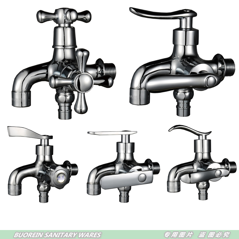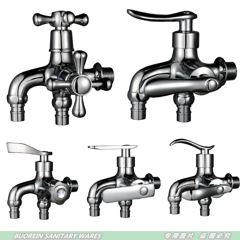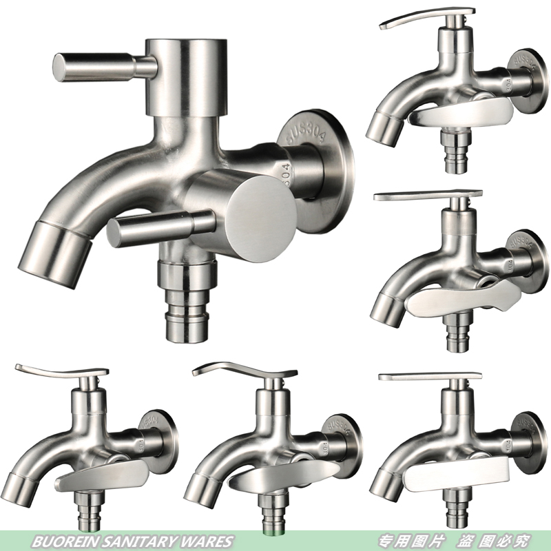 304 stainless steel single cold lengthening quick opening dual-use multi-function washing machine faucet double water outlet one in and two out