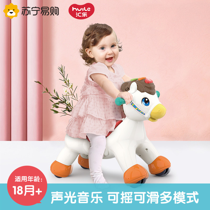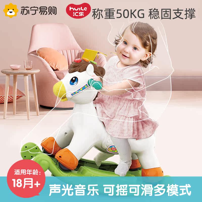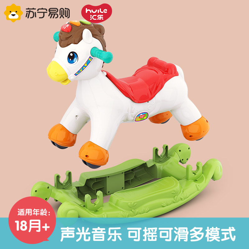 Huile toys Happy Rocking horse Children's music Small wooden Horse Rocking horse sliding car Rocking car dual-use toys