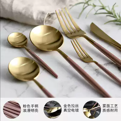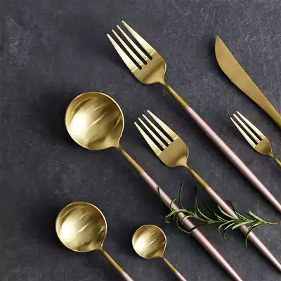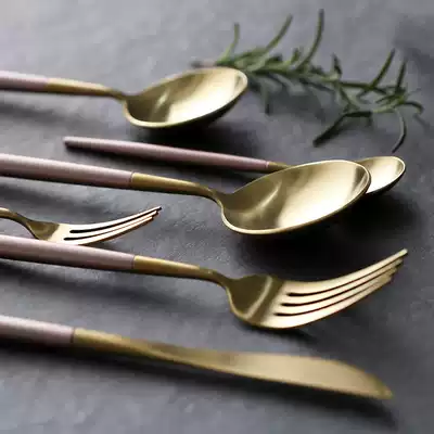 Fruit fork Dessert fork Dessert spoon Round coffee spoon Main dining fork Main dining knife Main dining spoon Main dining knife fork spoon Three-piece set Main dining knife fork spoon chopsticks four-piece set powder handle chopsticks gold]