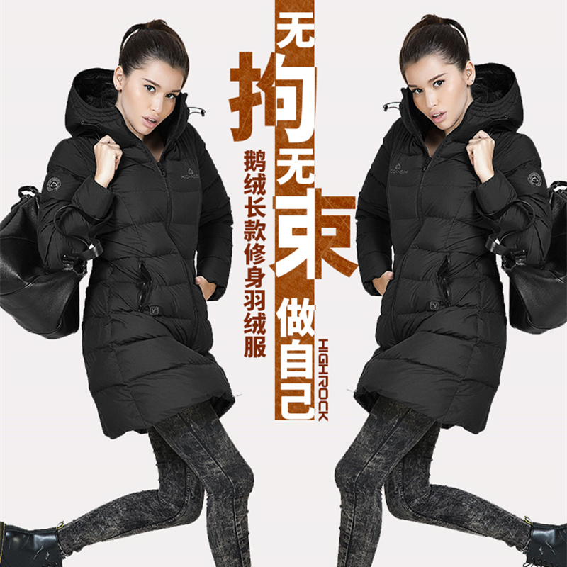 HIGHROCK SKY STONE Outdoor Autumn Winter New Lady Goose velvet with cap cashew in light and medium long version of down jacket