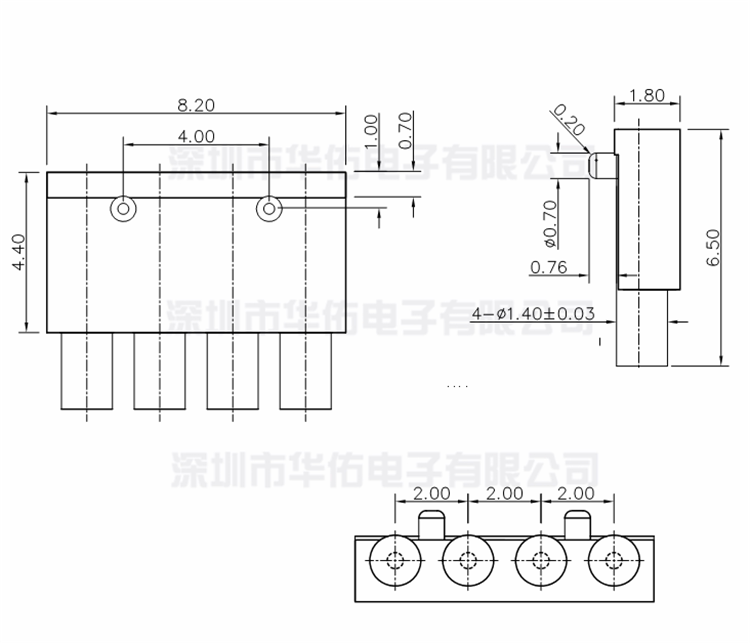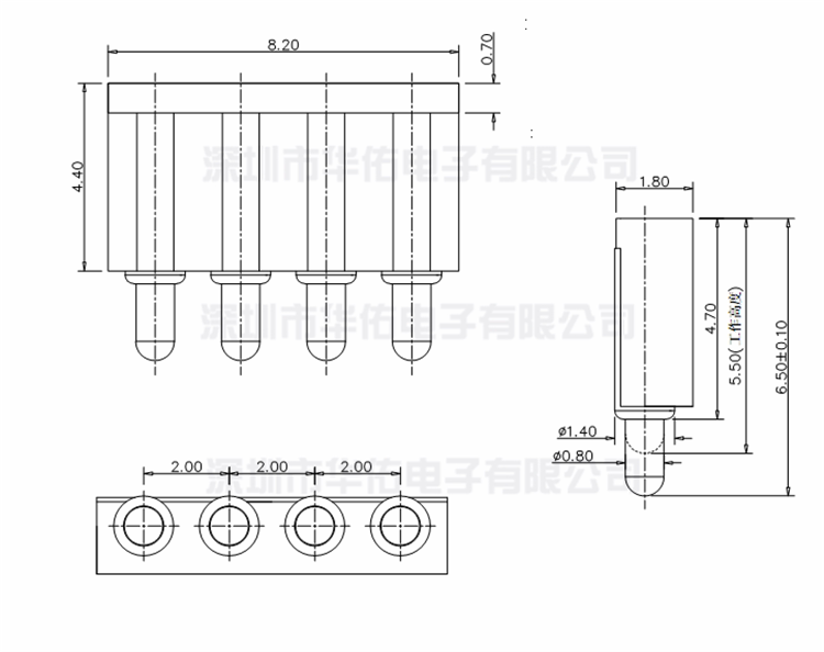 pogopin spring thimble 4P-2 0mm pitch gold plated charging conductive probe connector mold test