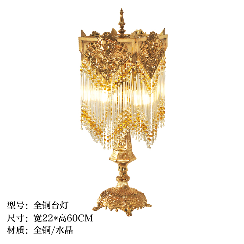 Full Copper Method Dewaxed Bronze Angel Flow Sucrystal Glass Art Bedside Table Lamp Villa Clubhouse Eurostyle Luminaire Accessories