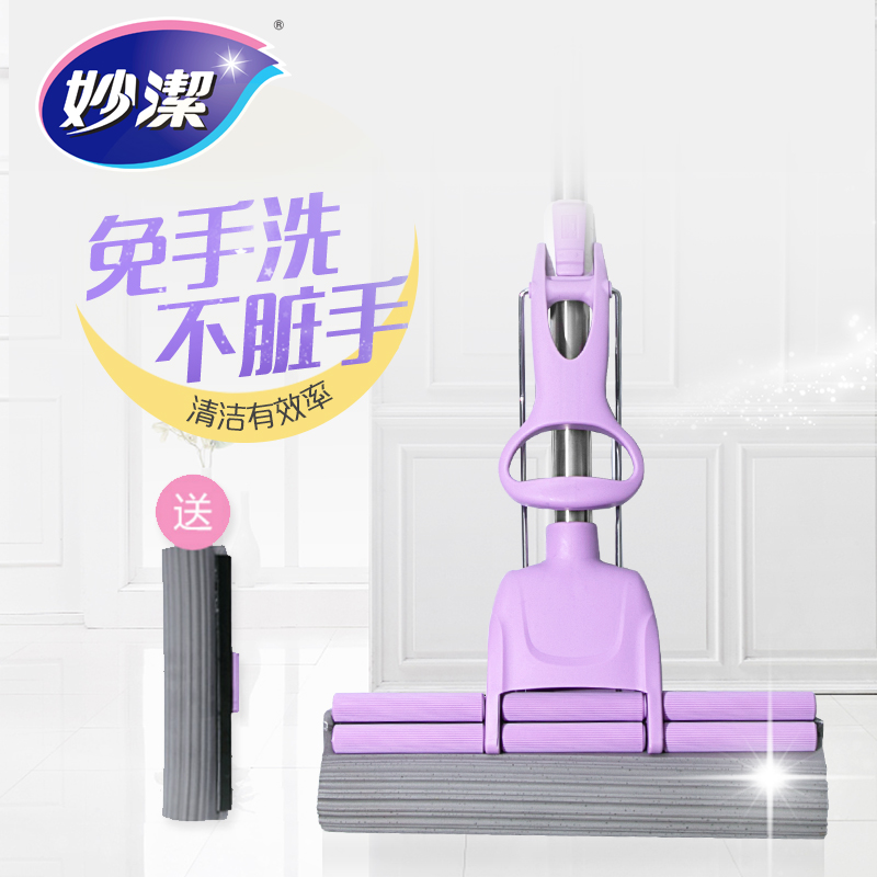 Miaojie double row roller type rubber cotton mop Strong water absorption hand pressure 3-stage extrusion clean and labor-saving