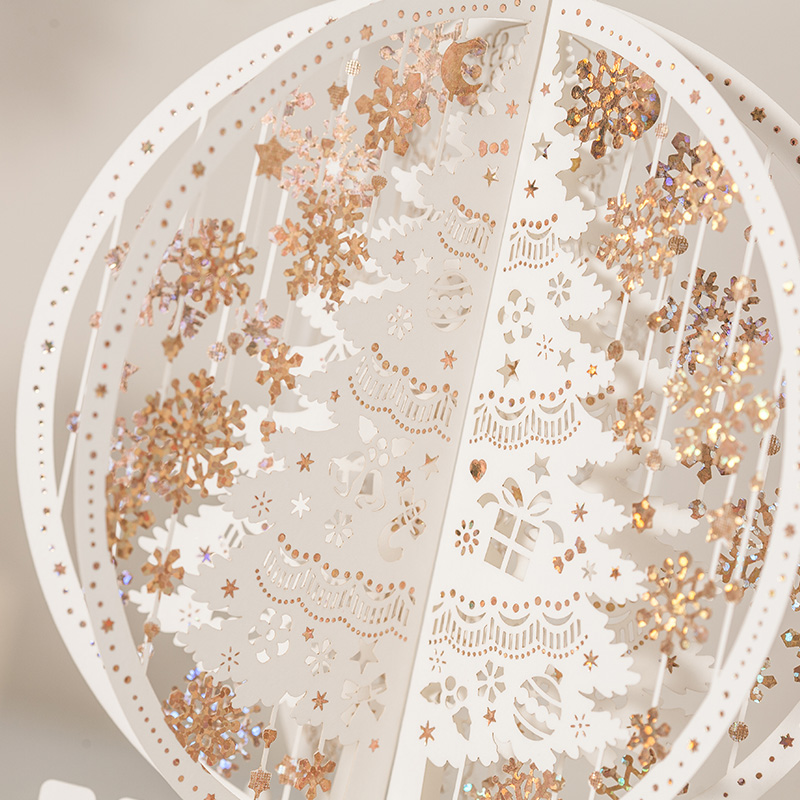 Crystal Ball Christmas 3D Card Christmas Tree House (White)Cherry Tree Universal 3D Card Bronzing Love Tree Christmas 3D Card White Castle Christmas Card Christmas Tree House(Red) Christmas Song-Praise Christmas