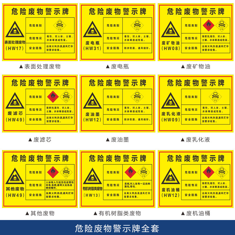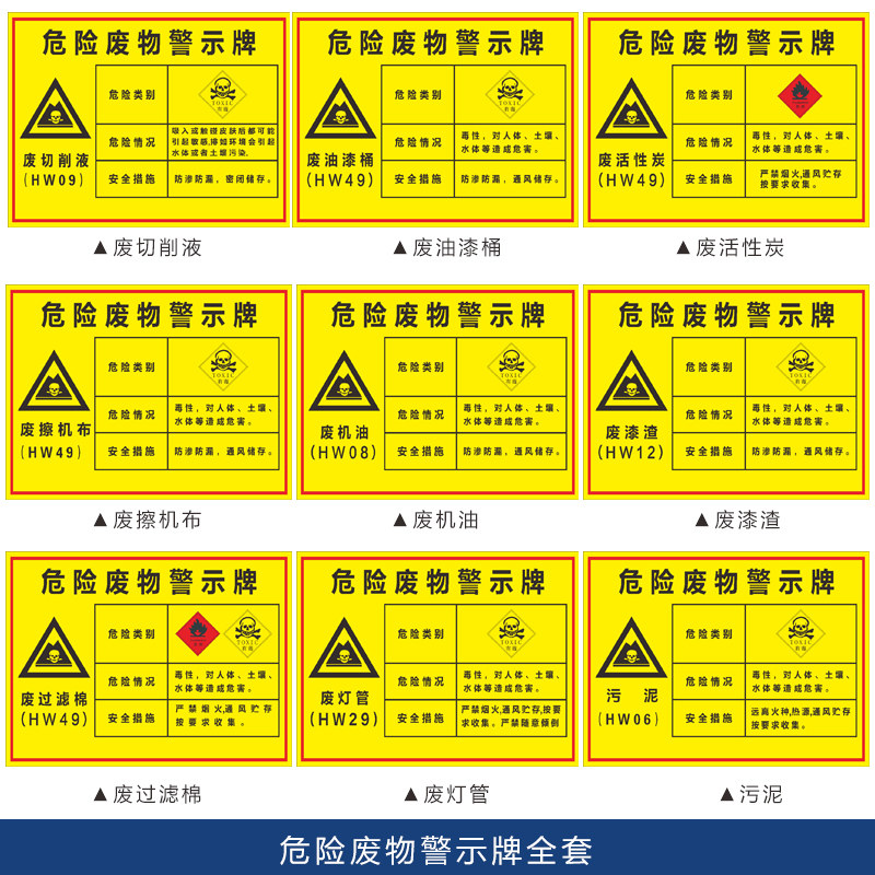 Waste paint bucket Waste oil Waste paint residue Waste rag Waste activated carbon Waste cutting fluid Waste hazardous waste warning signs Identification signs Toxic and harmful warning signs Prompt signs Support customization