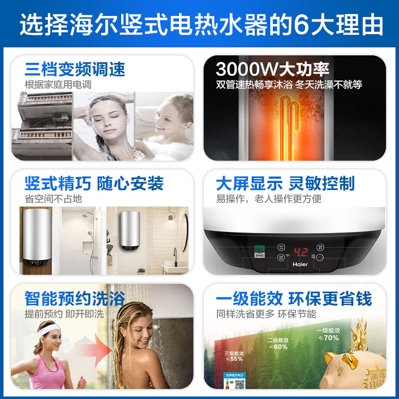 Haier Stand-up Electric Water Heater 50 Liters Home Small Household Type Makeup Room Erect 60 80L Water Storage Water Heater