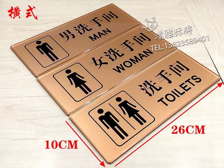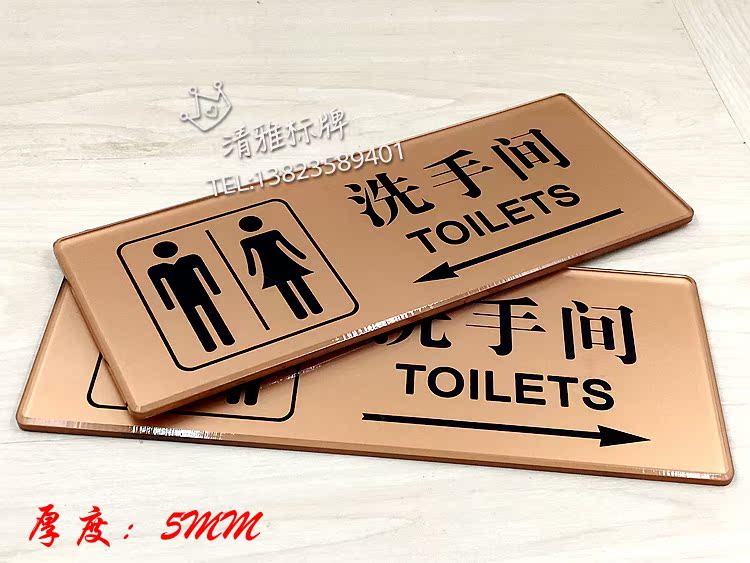 Powder room signage acrylic creative men's and women's toilet WC door brand toilet sign with arrow wall sticker