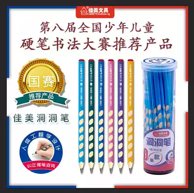 Jiamei hole pencil HB 2H 2B students writing homework Altman Children's hard pen calligraphy pen triangle rod big hole positive posture kindergarten calligraphy pencil cedar log bucket