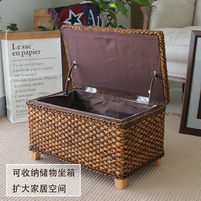 American sitting man handcrafted straw choreography rectangular storage Hye-changing stool for shoes can contain stool door hall plant sofa stool