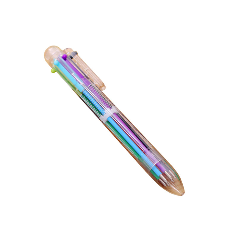 Six Color Ballpoint Pen Transparent Pole 6 Color Oil Character Pen Oil Stain Pen Atom Pen Cute Press Action Colored Oil Pen Oil Color Pen