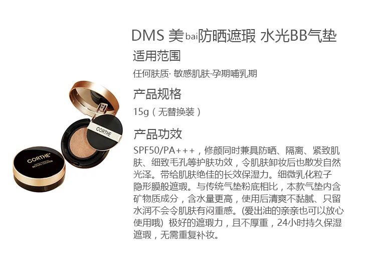 South Korea Dermatology Yard Line DMS CORHE Water Light BB Air Cushion Nourish Clothing with light and persistent water moisturizing