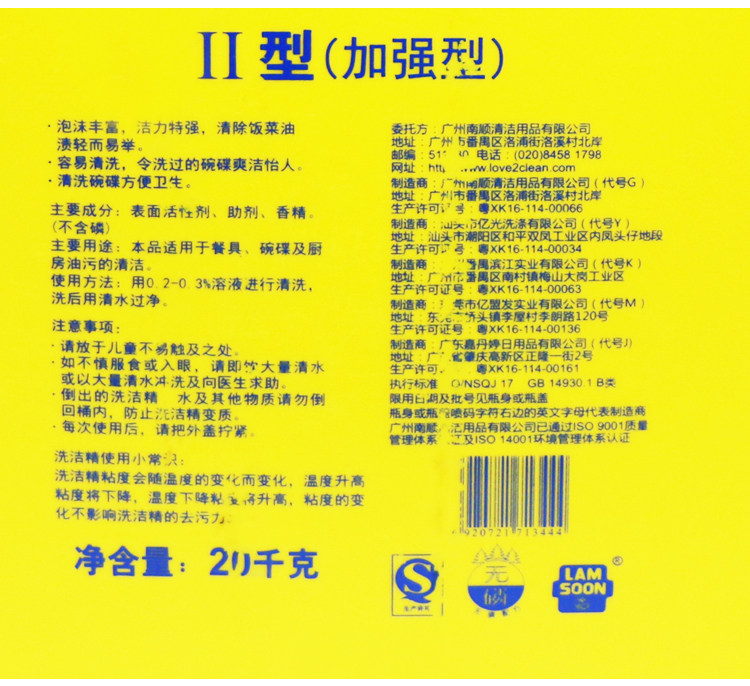 Labor brand lemon Ⅱ type 20 kg bucket of dishwashing detergent industrial hotel canteen with dishwashing detergent