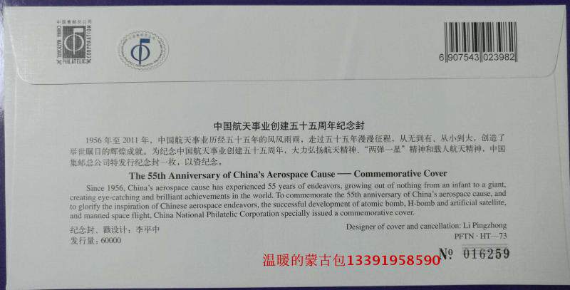 Head office space series 73 souvenir cover of China's space industry to create the 55 anniversary (small price is high)
