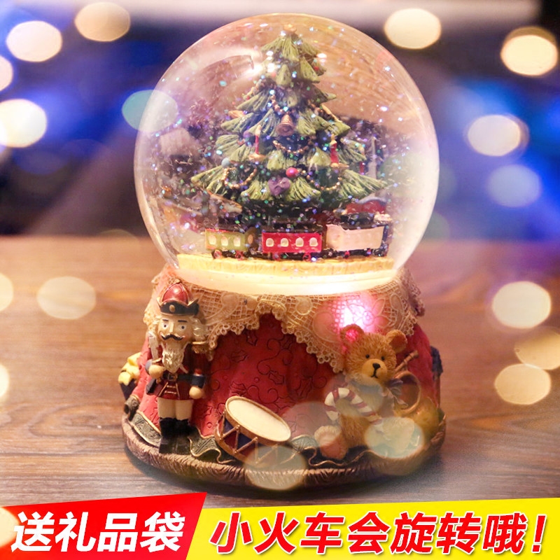 Christmas tree Dream Crystal ball music box rotating small train music box girl child Christmas birthday gift