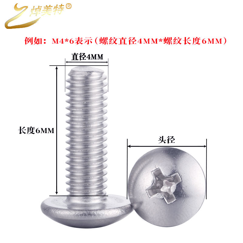 304 stainless steel M5 cross large flat head machine wire Mushroom head machine tooth screw Large umbrella head machine screw TM screw