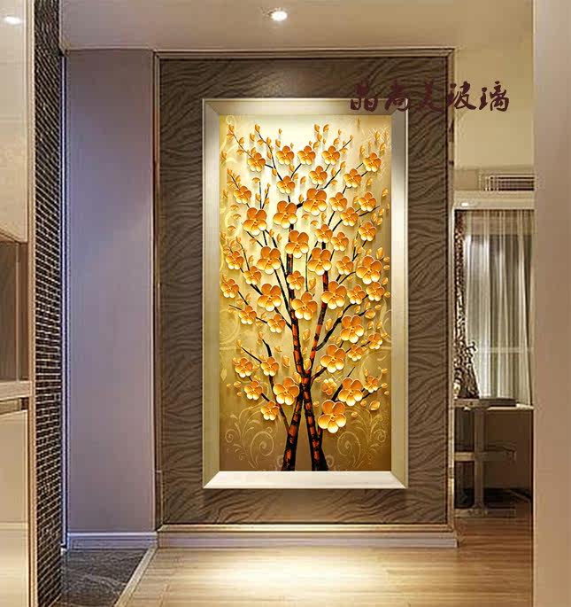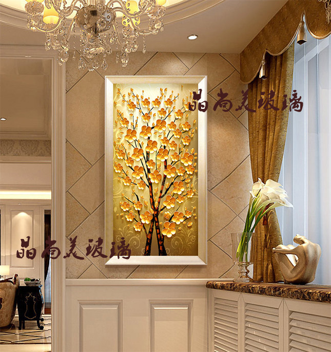 Shanghai Art Glass Xuanguan Partition Screen Modern Simple Aisle Background 3D Deep Engraving Happiness Trees