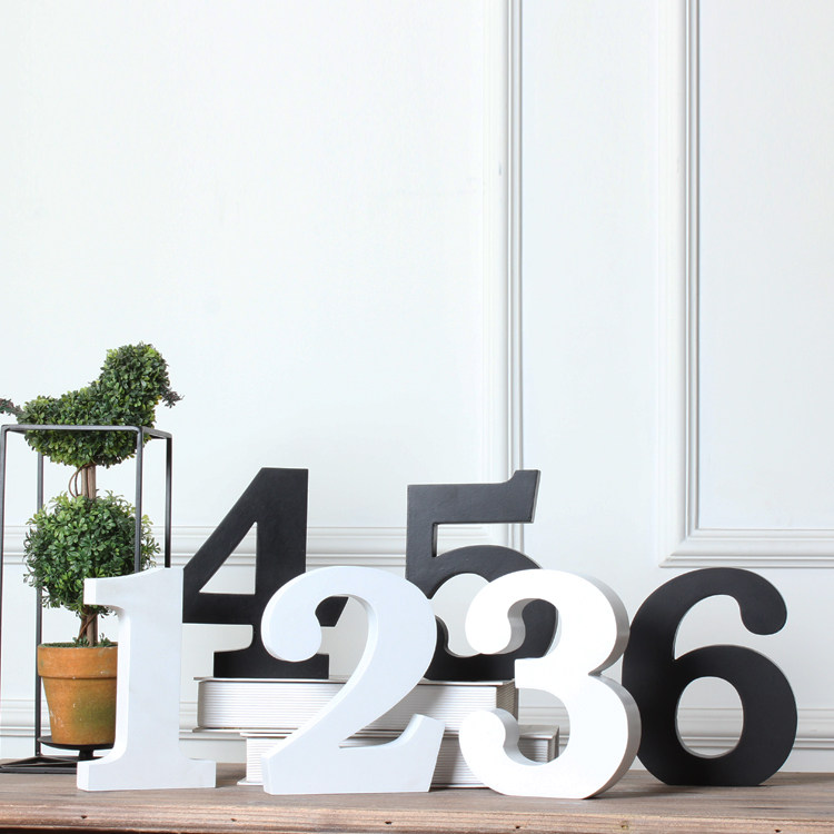 (Lang Yan)Creative wooden Arabic numerals ornaments black and white thickened study decorations shooting props