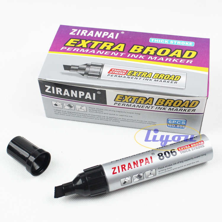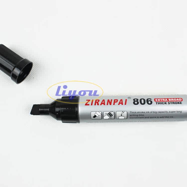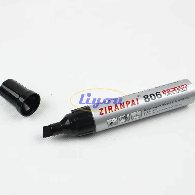 Large capacity thick head box head marker Thick stroke oblique head Black Kiwi pen Oily pen can add ink is not easy to wipe