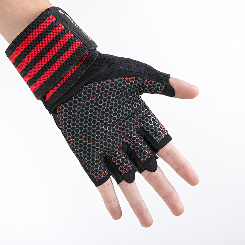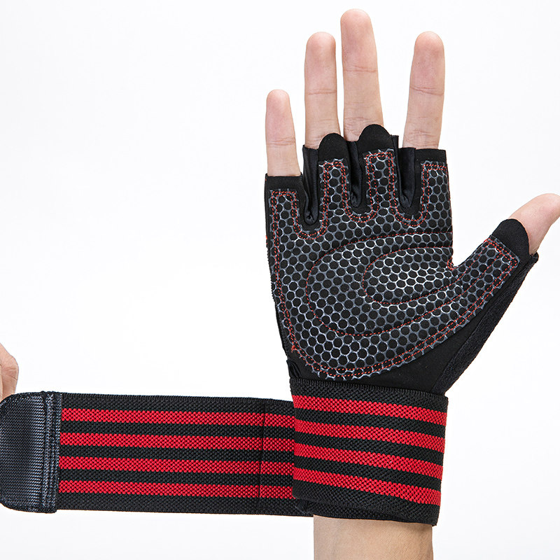 Extended wrist fitness gloves for men and women's equipment training single bar exercise gear briefing up to the upper half finger anti - slip 02