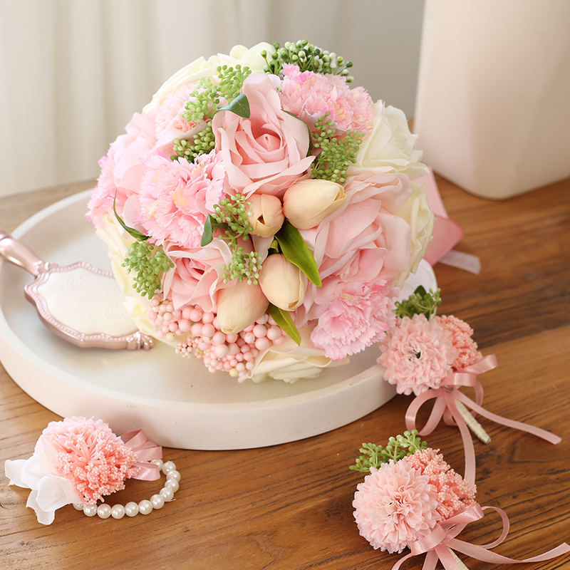 Shopkeeper recommended color Super beautiful bride hand bouquet Wedding wedding Korean pink forest Korean simulation
